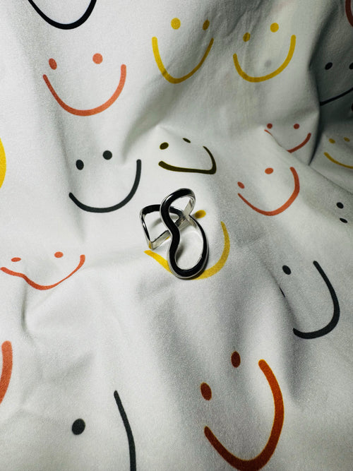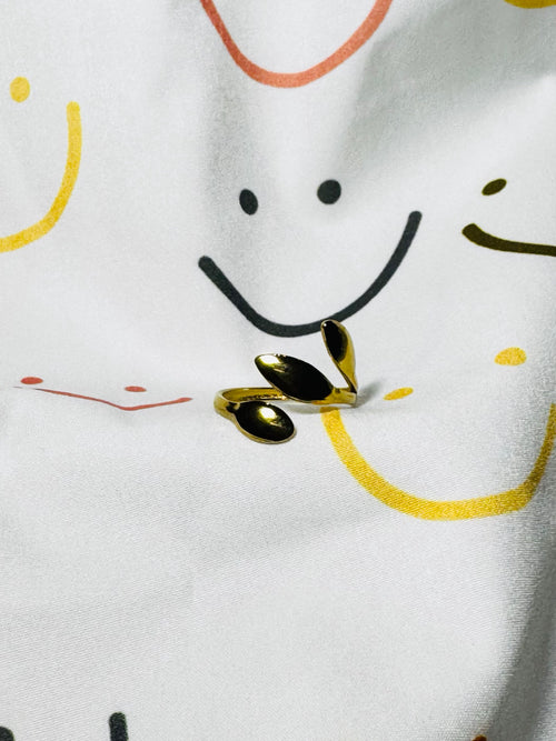 Anillo abierto de acero inoxidable con forma de hojas. Ajustable a cualquier tamaño.